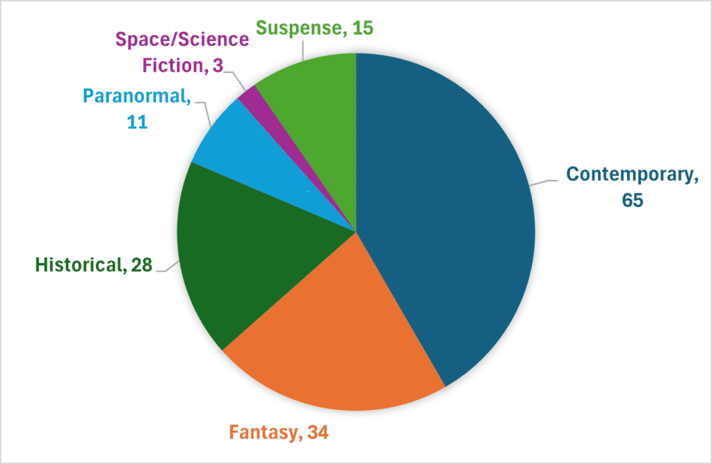 Here is my reading recap for 2025. I read a total of 156 books (according to my spreadsheet). Of those, 125 books were part of a series and 31 were standalones. There were 143 novels and 13 novellas. And Piper Rayne was my most read author, with 7 books.